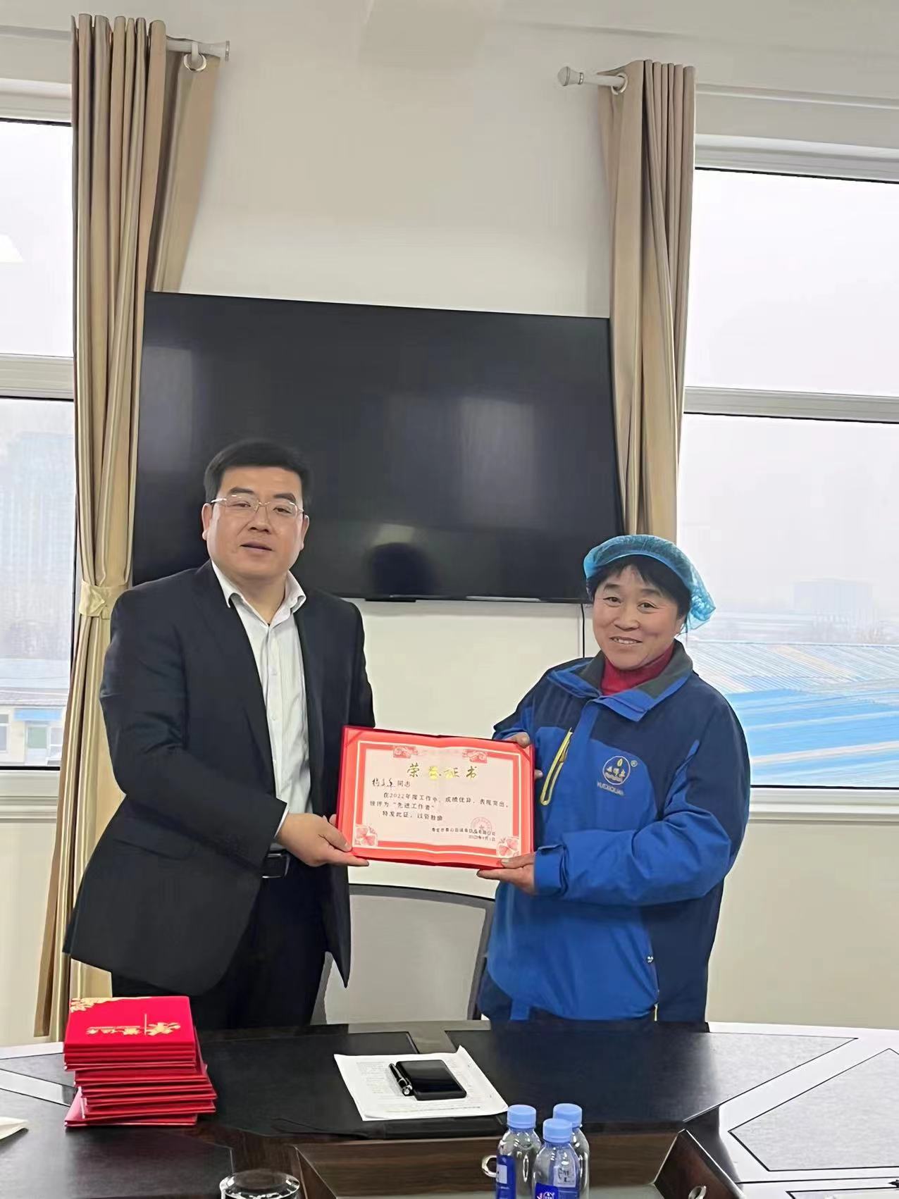 我公司召开2022年度工作总结大会,并对先进人员和供水服务标兵水站进行了表彰,会议由副总经理刘国良同志主持,经理助理蔡翔宇宣读了年度先进名单,总经理刘学强同志致辞并颁发先进证书。